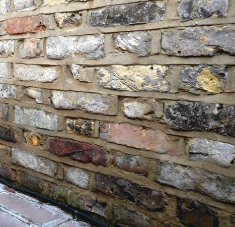Old London bricks were sourced and used to build this wall which forms the base for a new conservatory.