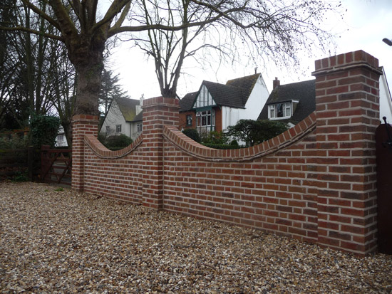A substantial property boundary wall - including non-standard, display bricks.